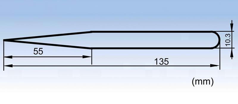 The SS-JP pointed tip stainless steel tweezers have a total length of 140mm and a pointed tip length of 53mm, which are extremely suitable for replacing precision parts in narrow spaces.